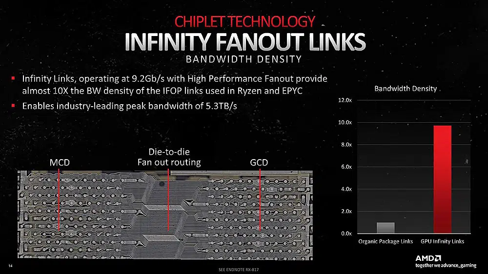 AMD llama a este diseño “Sea of Wires”, y no es simple marketing. Se trata de un entramado microscópico de conexiones que multiplica la densidad de comunicación entre chiplets. Gracias a la colaboración con TSMC y su tecnología InFO-oS, las señales ya no necesitan pasar por el sistema SerDes. El resultado es un menor consumo energético y la eliminación de los cuellos de botella que limitaban al Infinity Fabric.