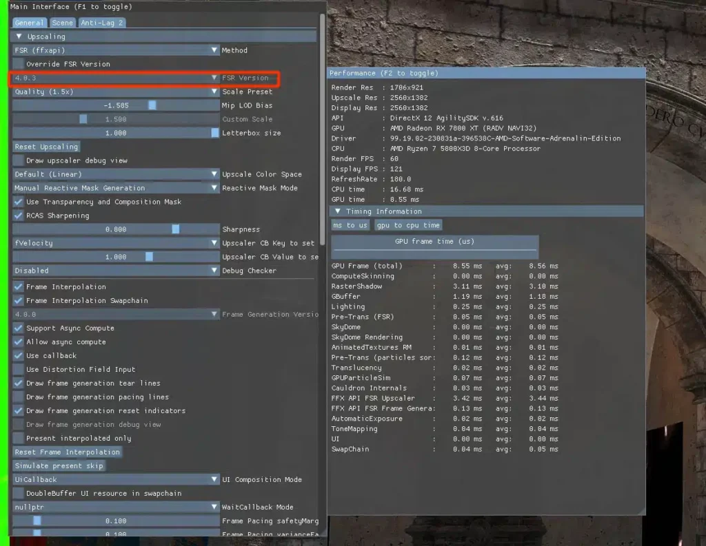 Afortunadamente, los primeros tests comunitarios revelan diferencias medibles. Sin embargo, no son catastróficas. Por ejemplo, una RX 7800 XT con FSR Redstone hackeado consume 0.13 milisegundos por frame. Esto duplica los 0.07 ms de FSR 3.1.6 estándar.