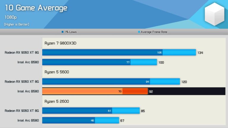 Intel por fin resolvió uno de los problemas más comentados de sus GPU Arc: la sobrecarga de CPU. Este fallo, detectado por Hardware Unboxed, hacía que las gráficas perdieran mucho rendimiento con procesadores de gama media o antiguos, como el Ryzen 5 5600.