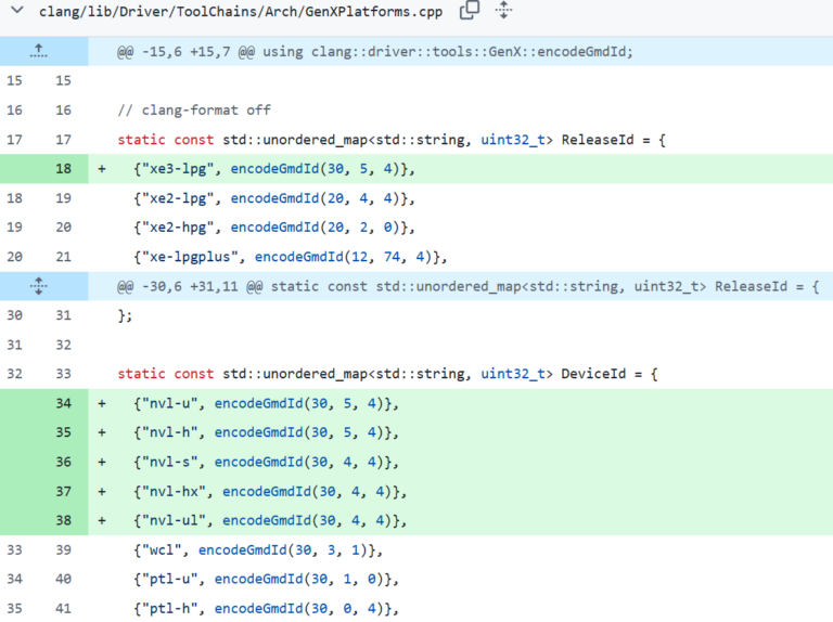 Un análisis reciente cambió el panorama. Las últimas actualizaciones del compilador cm-compiler asignan los IDs de Nova Lake a las versiones GMD 30.4.4 y 30.5.4, bajo la etiqueta xe3-lpg. Esta clasificación confirma que la base gráfica sigue siendo Xe3. Xe3p aparece en un parche distinto y asociado a GMD 35.11.0, lo que indica otra generación de hardware. Esto coincide con filtraciones previas sobre los chips móviles de Nova Lake, que ya apuntaban al uso de Xe3.