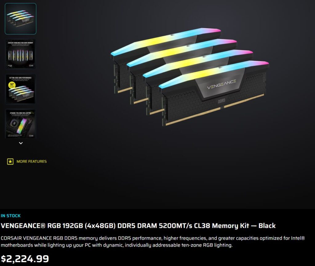 Estados Unidos tampoco escapa de esta fiebre. Plataformas como PC Part Picker ni siquiera listan kits de 256 GB. Las configuraciones de 192 GB de marcas como Corsair ya superan los 2,249 dólares. Esto excede igualmente el MSRP de la RTX 5090. Apenas unos meses atrás, estos mismos kits rondaban los 1,000 dólares. El panorama actual de suministro ha reescrito por completo las reglas del juego.