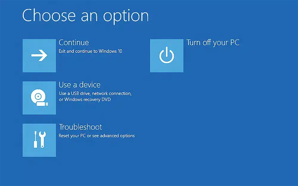 Un entorno de recuperación que necesita reparación