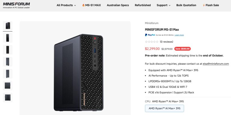 Minisforum vuelve a dar de qué hablar con el lanzamiento de su nueva PC compacta MS-S1 MAX. Este equipo llega con procesador AMD Strix Halo y un precio que no pasa desapercibido. Oficialmente, la compañía marca la etiqueta en $2879, aunque anuncia una “promoción” de salida en $2299. Sin embargo, muchos usuarios lo ven más como una estrategia de marketing que como una rebaja real, ya que la marca acostumbra a mantener sus precios intactos tras el estreno.