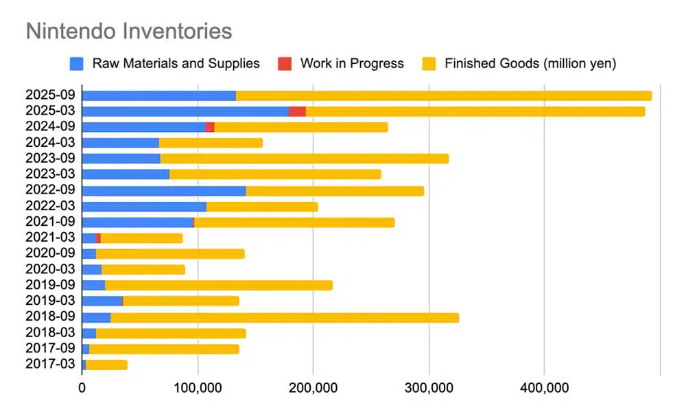 En ese panorama, la estrategia de Nintendo ha demostrado ser una jugada maestra de previsión. Según Furukawa, la compañía acumuló inventario de componentes clave desde 2021. Se anticiparon a la volatilidad del mercado. Los gráficos internos revelan un patrón claro. Hubo incrementos sostenidos en 2021 y 2022. Luego una caída estratégica en 2023 y 2024 para despachar stock necesario antes del lanzamiento. Finalmente, un nuevo pico en 2025 que les permite mantener la producción sin trasladar costos al consumidor final.