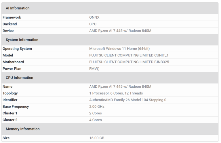 Sin embargo, lo fascinante del Ryzen AI 7 445 radica en su configuración de seis núcleos. Estos se distribuyen en arquitectura asimétrica 2+4. Específicamente, probablemente incluye dos núcleos Zen 5 de alto rendimiento. Mientras tanto, los otros cuatro serían Zen 5c orientados a eficiencia. En contraste, esta disposición difiere del posible antecesor, el Ryzen AI 5 340. Aquel modelo empleaba una distribución 3+3.