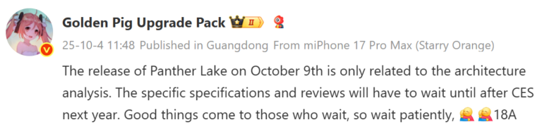 Panther Lake: el embargo del 9 de octubre se centrará solo en la arquitectura del chip