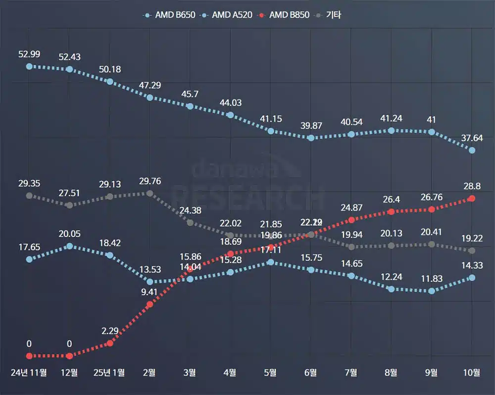 Lo más revelador está en los números puros. Estas placas han escalado desde una participación nula en diciembre de 2024. Ahora conquistan un impresionante 28,8% del mercado en solo diez meses. Paralelamente, las B650 reinaban con un 52,99% de cuota. Ahora luchan por mantener el 37,64%. No es que las veteranas sean malas opciones. Simplemente, la ecuación precio-prestaciones se ha inclinado dramáticamente hacia las recién llegadas.