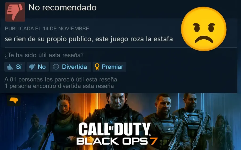 En Steam, las primeras 825 reseñas pintan un panorama complicado. Los usuarios critican el precio de 80 dólares, las pocas novedades respecto a Black Ops 6 y la sensación de estar ante una simple “reskin”. La comparación con Battlefield 6 y Arc Raiders tampoco ayuda, porque ambos debutaron con valoraciones del 80% al 90%.
