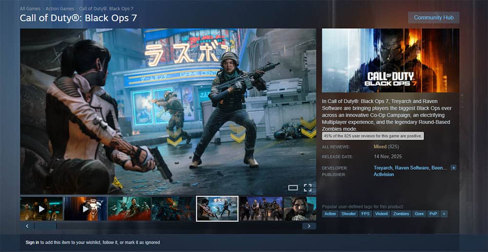 Call of Duty vuelve a la acción con Black Ops 7, pero su estreno no ha salido como esperaba Activision. Mientras Battlefield 6 y Arc Raiders celebran lanzamientos muy exitosos, el nuevo CoD aterriza en Steam con solo un 45% de reseñas positivas. La comunidad también ha encendido la discusión sobre el uso de contenido generado por IA.