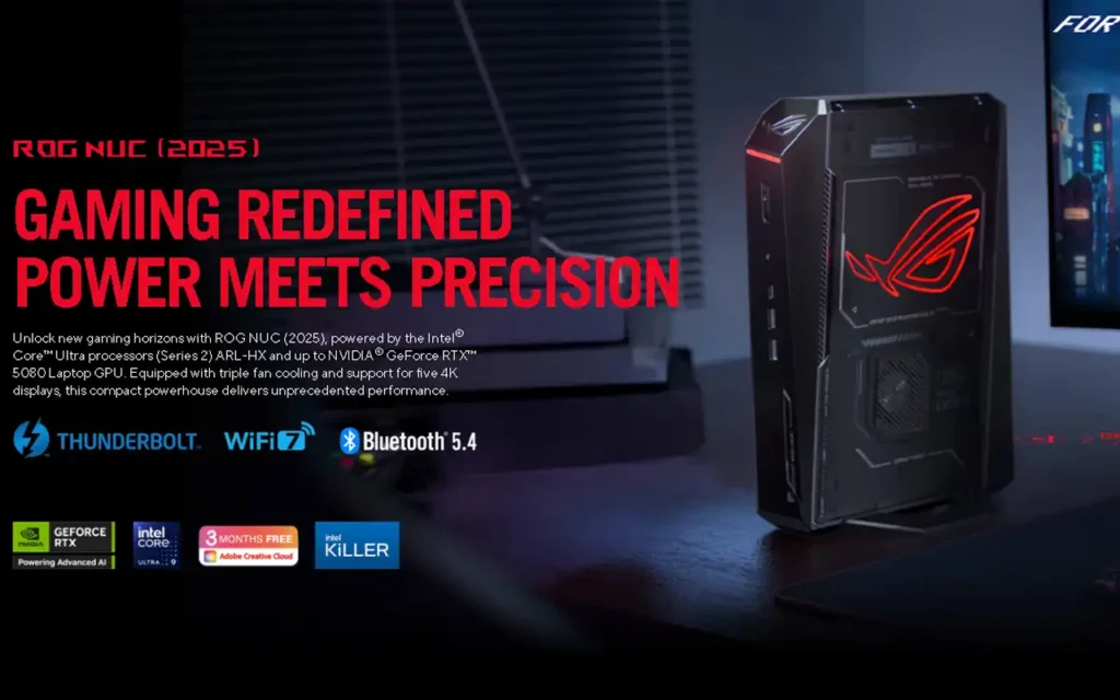 A diferencia de otras mini PCs enfocadas solo al gaming, el ROG NUC (2025) está diseñado como un centro de operaciones completo. Desde proyectos creativos pesados hasta retransmisiones multitarea, esta máquina está lista para todo. Y si eres de los que disfrutan trasteando con el hardware, te alegrará saber que la RAM y el almacenamiento se pueden actualizar sin necesidad de herramientas. Todo rápido, limpio y modular.