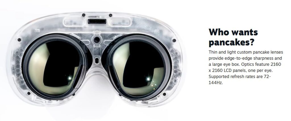 Para el seguimiento, integra cuatro cámaras externas y dos sensores de seguimiento ocular. Gracias a ellos, el casco usa Foveated Streaming, una tecnología que optimiza la calidad de imagen según el punto donde mira el usuario. Los iluminadores IR garantizan precisión incluso en espacios con poca luz.