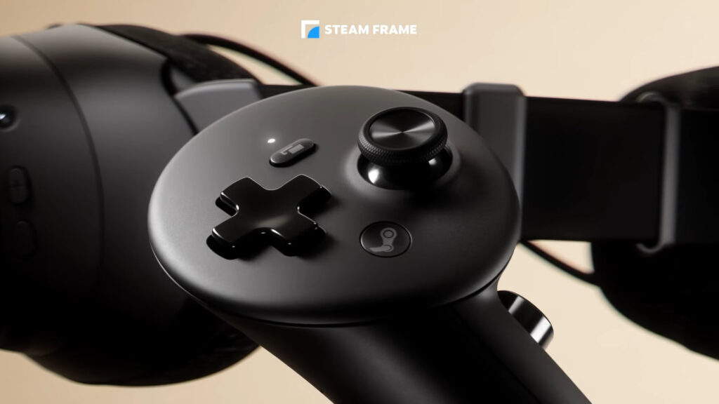 Los nuevos controladores del Steam Frame combinan funciones de mando tradicional y seguimiento VR. Incorporan botones ABXY, cruceta, joysticks magnéticos, gatillos analógicos y retroalimentación háptica. También detectan el movimiento de los dedos. Cada uno pesa 130 g y funciona con una pila AA que dura unas 40 horas.