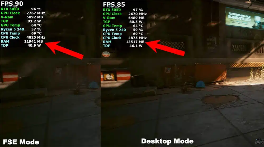 El análisis de ETA Prime con una RTX 5050 para portátiles revela datos fascinantes sobre el rendimiento. Las pruebas muestran incrementos variables en tasas de fotogramas. Algunos títulos ganan entre 4 y 6 FPS. Benchmarks exigentes como Cyberpunk 2077 registran mejoras más modestas de aproximadamente 2 FPS adicionales. Lo verdaderamente impresionante está en la gestión de memoria. FSE reduce el consumo de RAM en 2 GB completos. El uso pasa de 7.7 GB a solo 5.7 GB en reposo.